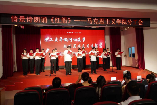 本次汇演由校工会精心策划,以应用技术学院分工会的合唱朗诵《我的辽理工》正式启幕。