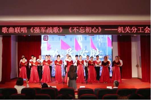 机关分工会以铿锵有力的联唱《强军战歌》和《不忘初心》,展现了不忘初心、牢记使命的坚定信念,将现场气氛推向高潮。